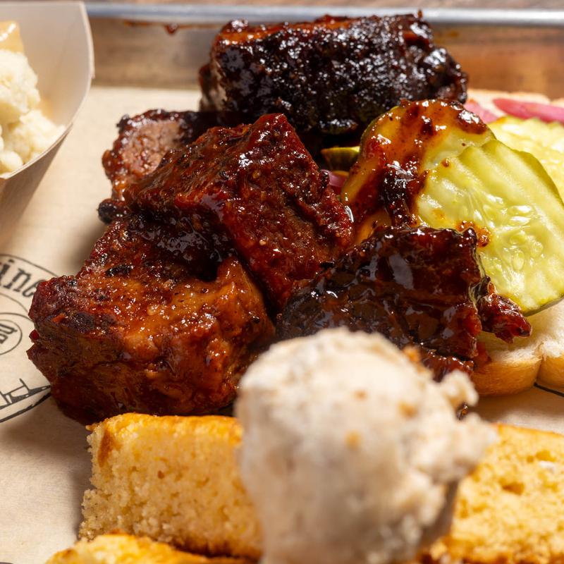 • Premium Meats: Brisket Burnt Ends | Pork Belly Burnt Ends | Steak Tips | Grilled Shrimp | House-Made Sausage