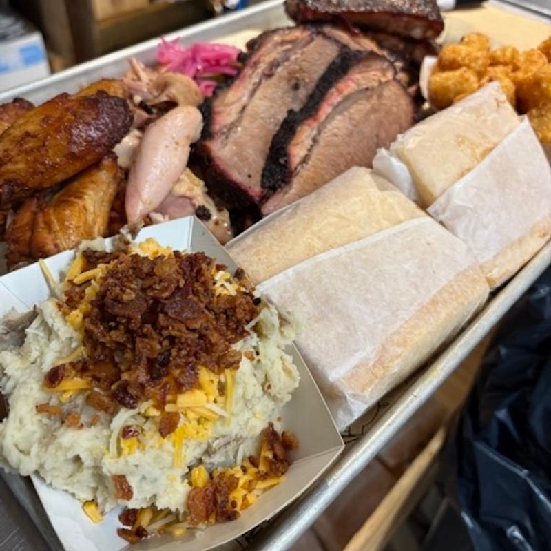 • Choose Two Sides(Sides will be set. No substitutions): Mac & Cheese | Cole Slaw | Cowboy Beans | Dirty Rice | Collard Greens |smoked Mashed Potatoes | Fries | Tots | Chips